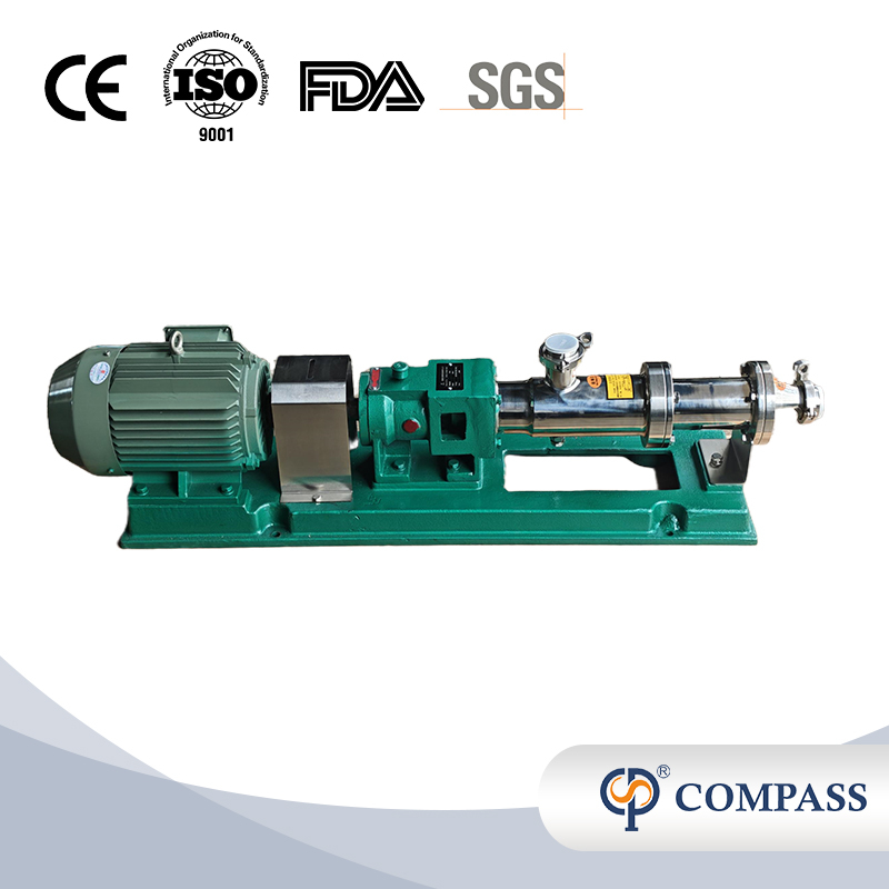 Sanitary screw pump is a single-screw transport pump. Its main working parts are the screw of the eccentric screw (called the rotor) and the screw bushing (called the stator) with the inner surface of the double helical surface. Its working principle is that when the motor drives the pump shaft to rotate, the screw rotates around its own axis on the one hand, and on the other hand it rolls along the inner surface of the bushing, thus forming the sealed chamber of the pump. Each time the screw rotates once,the liquid in the sealing cavity advances by a pitch, and with the continuous rotation of the screw, the liquid is pressed from one sealing cavity to the other sealing cavity in a spiral manner, and finally squeezes out of the pump body. Sanitary Single Screw Pump is used for in all fields widely to feed kinds of medium, running at a constant pressure continuously, without pulse and damage when feeding medium , and change the gauging aim through adjusting rotation speed.